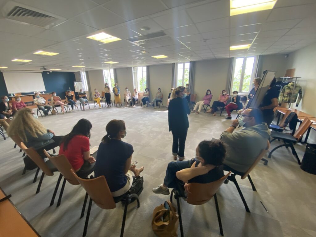 Le théâtre forum permet de partir de situations réelles (santé mentale, épuisement, incompréhensions soignants/patients, situations de travail complexes) et de les rejouer avec le public. Les participants peuvent monter sur scène, tester d’autres manières de faire et explorer ensemble des pistes de solutions dans un cadre sécurisé et bienveillant. En savoir + - Interventions pour les équipes soignantes et les organisations