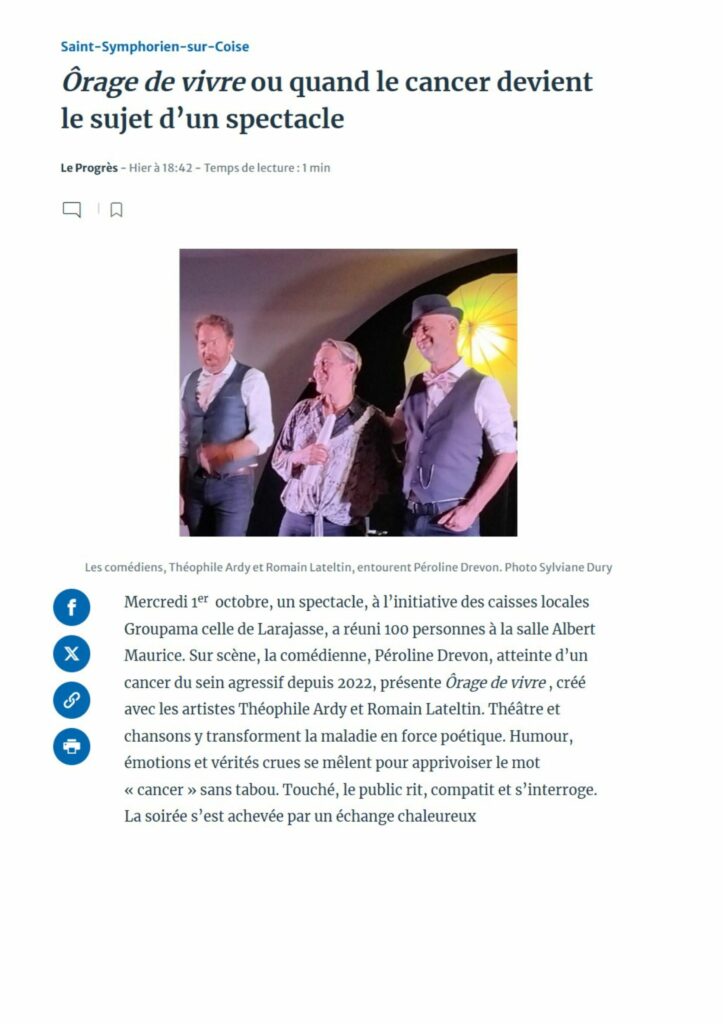 Octobre Rose et son cortège d’actions, c’est crucial pour parler du cancer du sein et je remercie celles et ceux qui s’engagent pour favoriser le dépistage. Ce spectacle, c’est la cerise sur le mamelon, du « live » qui lève les tabous, donne de l’espoir pour dédramatiser les soins et y puiser la force du combat.